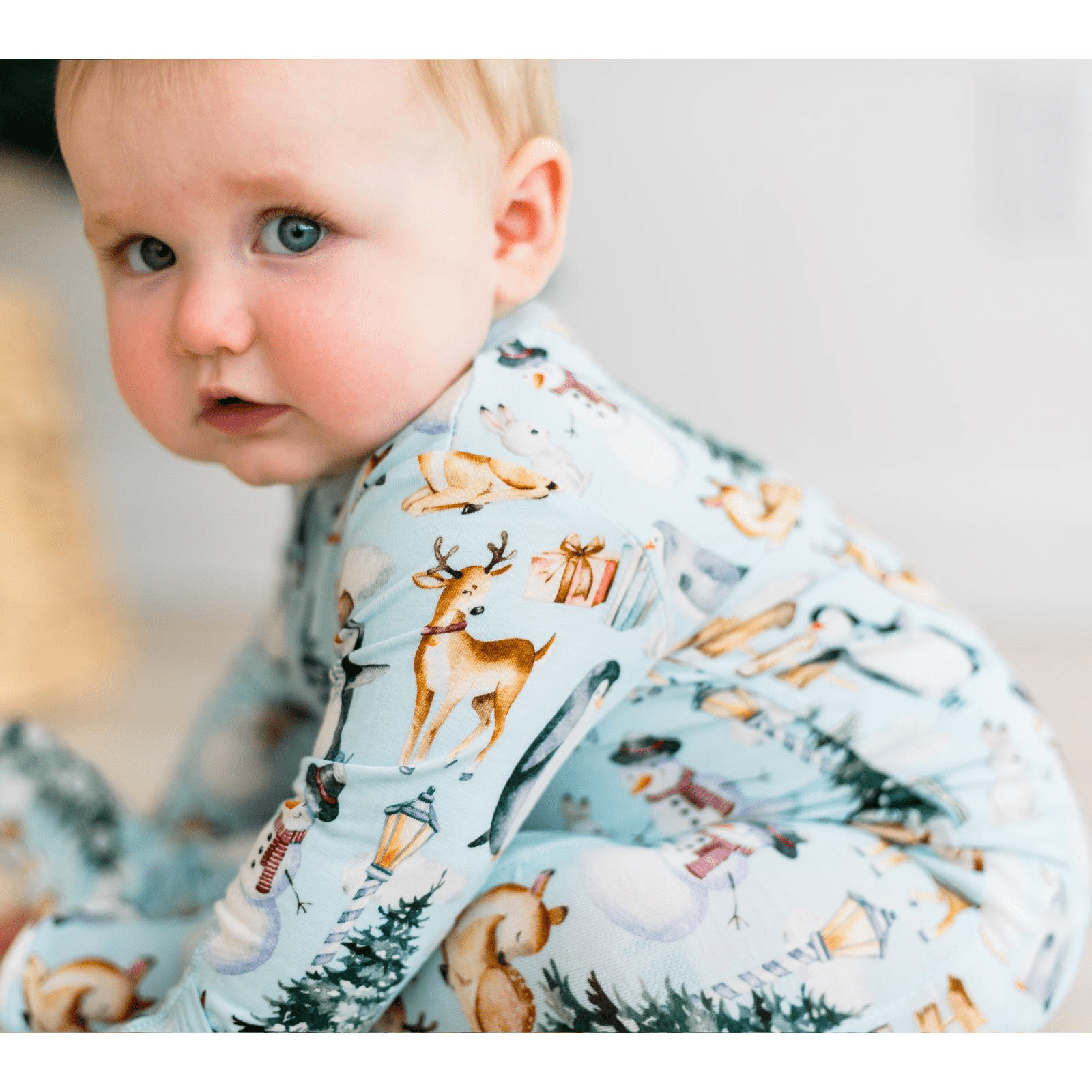 Kickee Pants Print Footie with 2 Way Zipper, Spring Sky Winter Wonderland