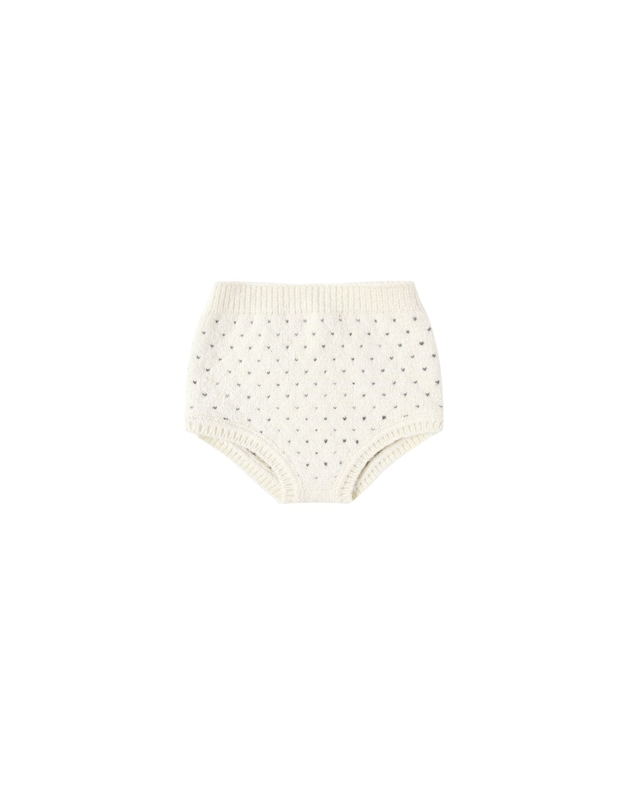 Our Knit Bloomers feature a ribbed waistband and leg openings for a snug fit. Featuring our 'evergreen speckle' on our 'natural' hue.