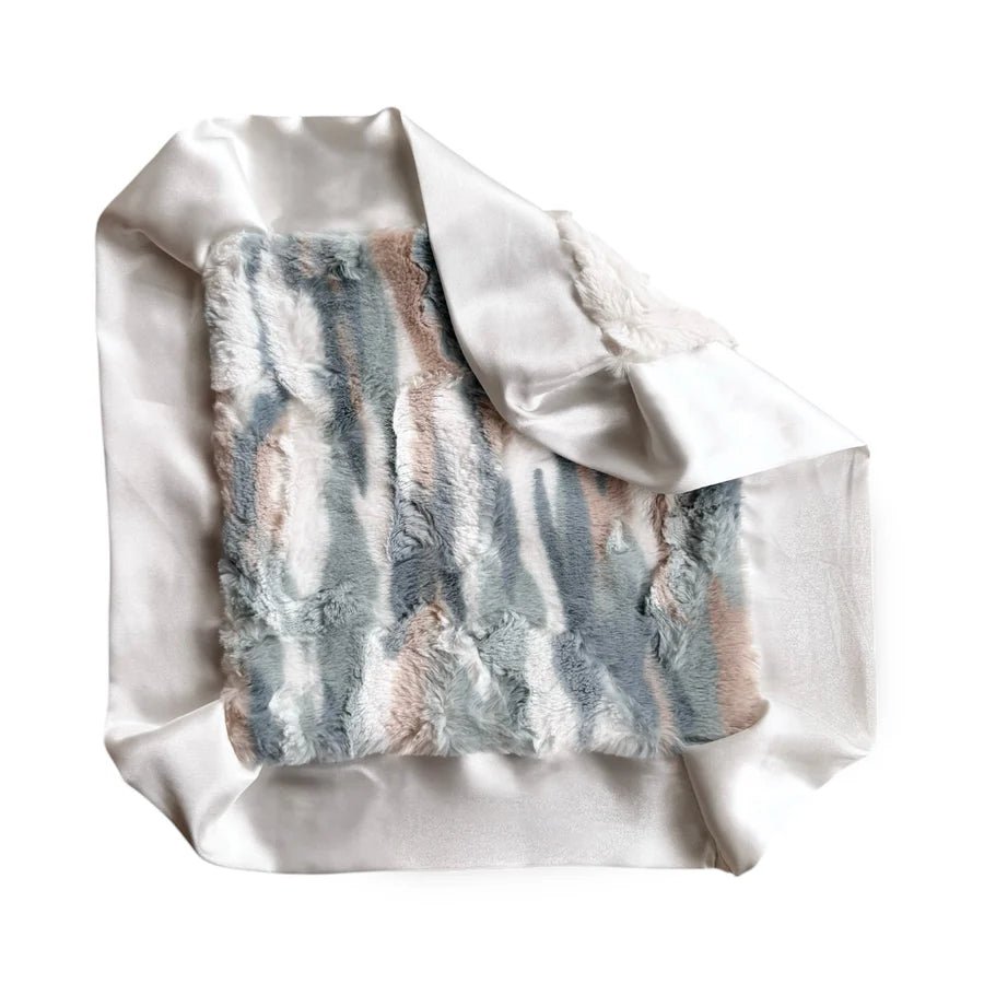 Introducing our exclusive Riptide Luxury Lovie, a miniature masterpiece inspired by the calming rhythm of ocean waves. Meticulously crafted from 100% polyester faux fur cuddle, this lovie offers an incredibly soft and cozy feel — perfect for comforting your little one.